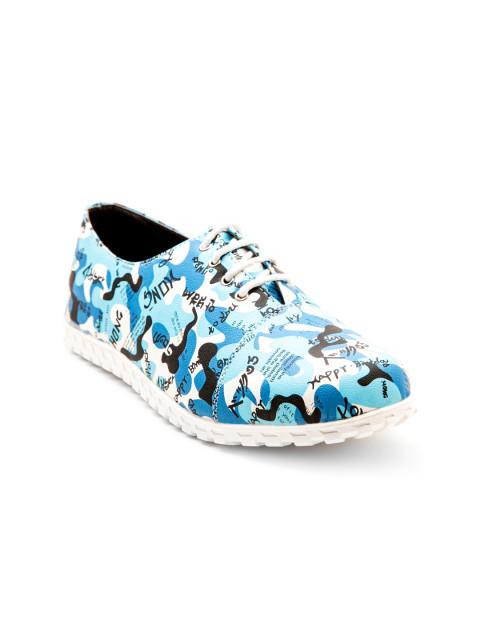 A couple of blue printed casual shoes with mid-beat styling.Faux leather upper.Textured outsole.